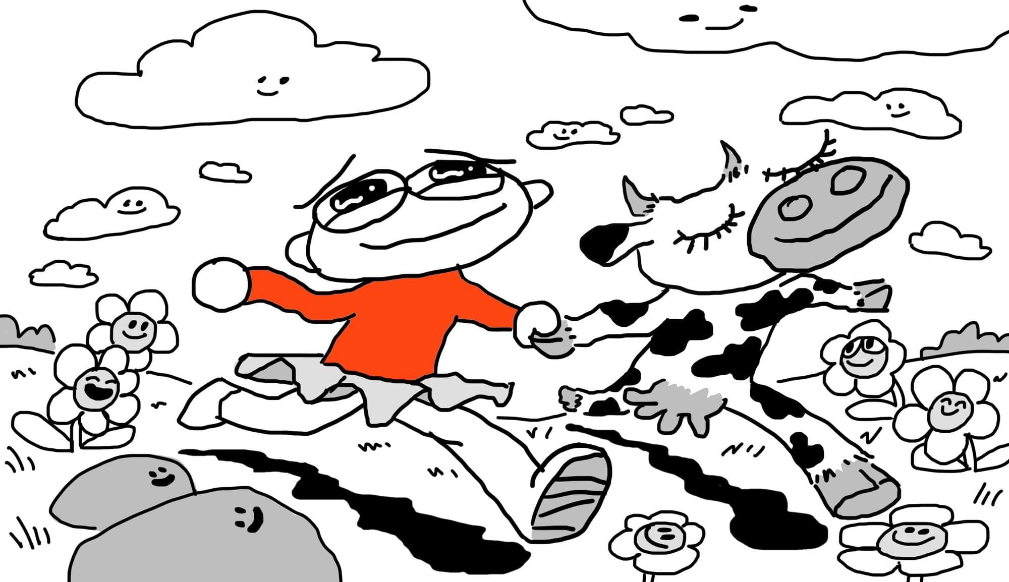 Why am I mentioning this? Well, I felt these “male hug” vibes in my friend’s reasoning of going meat-free. He used many redundant words, gasps, and phrases in combination with spasming body language to describe a seemingly banal decision. There he was, a grown-ass man, suddenly flexing the grammar of a teenager. He described feeling love for animals as weird. “And shit.” Why is it hard to just say “I love animals”? I don’t actually know, best I can offer is a messy thesis.